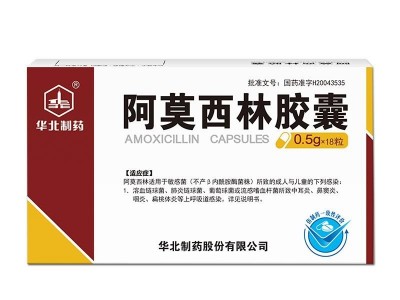 【功能主治】阿莫西林适用于敏感菌(不产β内酰胺酶菌株)所致的下列感染:1.溶血链球菌、肺炎链球菌、葡萄球菌或流感嗜血杆菌所致中耳炎、鼻窦炎、咽炎、扁桃体炎等上呼吸道感染。2.大肠埃希菌、奇异变形杆菌或粪肠球菌所致的泌尿生殖道感染。3.溶血链球菌、葡萄球菌或大肠埃希菌所致的皮肤软组织感染。4.溶血链球菌、肺炎链球菌、葡萄球菌或流感嗜血杆菌所致急性支气管炎、肺炎等下呼吸道感染。5.急性单纯性淋病。6.本品尚可用于治疗伤寒、伤寒带菌者及钩端螺旋体病;阿莫西林亦可与克拉霉素、兰索拉唑三联用药根除胃、十二指肠幽门螺杆菌,降低消化道溃疡复发率。